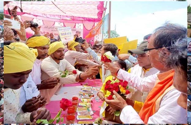 मुख्यमंत्री शिवराज सिंह चौहान ने गुरुवार को बड़गांव में आयोजित रोड शो के दौरान वनोपज चिरौंजी बेचकर आत्मनिर्भर बन रहे निपनिया और केवलारी गाँव के जनजाति समाज से भेंट की। मुख्यमंत्री ने जनजातियों द्वारा किए जा रहे चिरौंजी की बिक्री के कार्य के व्यावसायिक रूप से और अधिक सक्षम और सुदृढ़ बनाने के लिए दो लाख रुपए की सहायता राशि प्रदान की। जनजातीय समाज ने मुख्यमंत्री चौहान को चिरौंजी का पैकेट उपहार स्वरूप प्रदान किया।