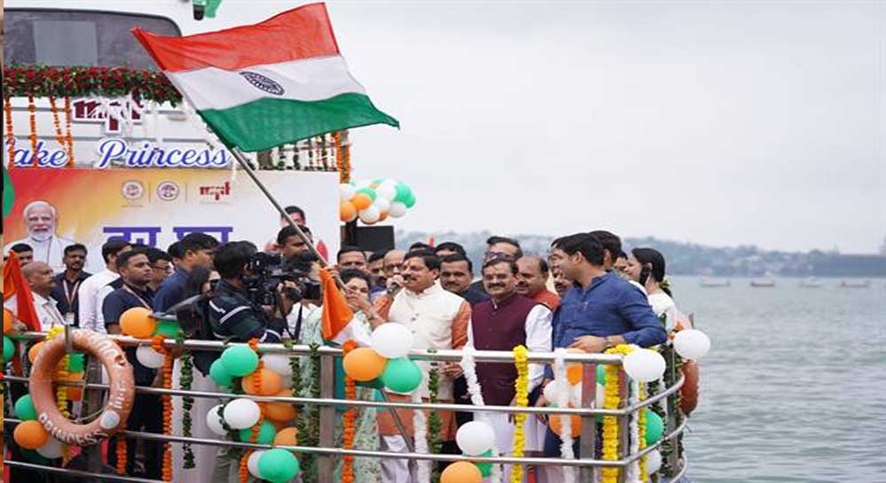 मुख्यमंत्री डॉ. मोहन यादव ने कहा है कि भोपाल के बड़े तालाब में देश का सबसे बड़ा तिरंगा लगाया जाएगा। प्रधानमंत्री नरेंद्र मोदी के आहवान पर आजादी के पर्व पर उत्साह, उमंग और जोश के साथ हर घर तिरंगा अभियान मनाया जा रहा है। भारत विश्व का सबसे बड़ा लोकतंत्र है और तिरंगा सदा से ही हमारे लिए संघर्ष, परिश्रम और प्रगति का प्रेरणा स्रोत रहा है। हर घर तिरंगा अभियान में सभी लोग देशभक्ति के आनंद से अभिभूत हैं। मुख्यमंत्री डॉ. यादव ने बड़ा तालाब स्थित बोट क्लब पर आयोजित तिरंगा यात्रा के अवसर पर मीडियाकर्मियों से चर्चा में यह बात कही। मुख्यमंत्री डॉ. यादव ने बोट क्लब पर मध्य प्रदेश टूरिज्म के नवीनीकृत फूड कॉर्नर लहर फास्ट का फीता काटकर तथा पूजन कर शुभारंभ किया। कार्यक्रम में सांसद वी.डी. शर्मा, भोपाल सांसद आलोक शर्मा, विधायक भगवान दास सबनानी, सहित जिला प्रशासन व पर्यटन विभाग के अधिकारी उपस्थित थे।