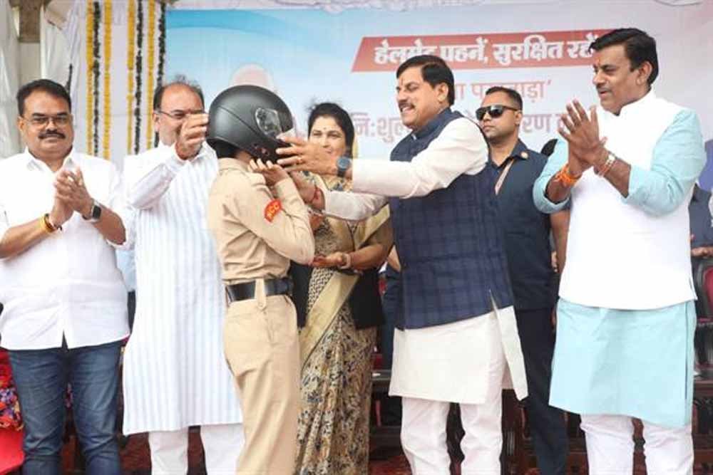 मुख्यमंत्री डॉ. यादव सड़क सुरक्षा जागरूकता के लिए शनिवार को सेवा पखवाड़ा अंतर्गत अटल पथ पर आयोजित नि:शुल्क हेलमेट वितरण कार्यक्रम को संबोधित कर रहे थे। मुख्यमंत्री डॉ. यादव ने दीप प्रज्ज्वलित कर कार्यक्रम का शुभारंभ किया और दो पहिया वाहन रैली को झंडी दिखाकर रवाना किया। कार्यक्रम में युवाओं को 2100 हेलमेट वितरित किए गए। मुख्यमंत्री डॉ. यादव ने प्रतीक स्वरूप पांच दो पहिया वाहन चालकों मनोज निगम, संदीप बिसेन, सुमित प्रधान, एनसीसी कैडेट सुश्री सान्या सिद्दीकी और अंजली सिंह को हेलमेट पहनाकर जीवन का संदेश दिया।
