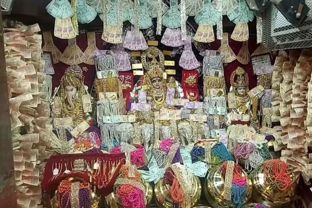 दीपोत्सव के पहले दिन यानी आज धनतेरस से मंदिर की सजावट को भक्त निहार सकते हैं। संभवत: यह देश का पहला ऐसा मंदिर है, जो पांच दिनों तक भक्तों द्वारा अर्पित आभूषण और नोटों से सजा रहता है