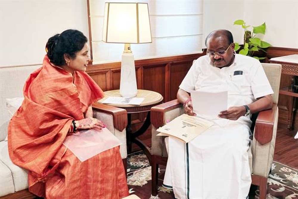 राज्यमंत्री श्रीमती गौर ने बीएचईएल में स्थित 1420 दुकानों के नवीनिकरण के संबंध में लायसेंस फीस और नामांतरण राशि के निर्धारण में की गई वृद्धि और दुकानदारों द्वारा दिये गये प्रस्ताव की जानकारी से भारी उद्योग मंत्री श्री कुमारस्वामी को अवगत कराया। केन्द्रीय मंत्री श्री कुमारस्वामी ने उद्योग मंत्रालय के वरिष्ठ अधिकारियों के साथ प्रस्ताव पर विचार कर निराकरण के लिये कहा।