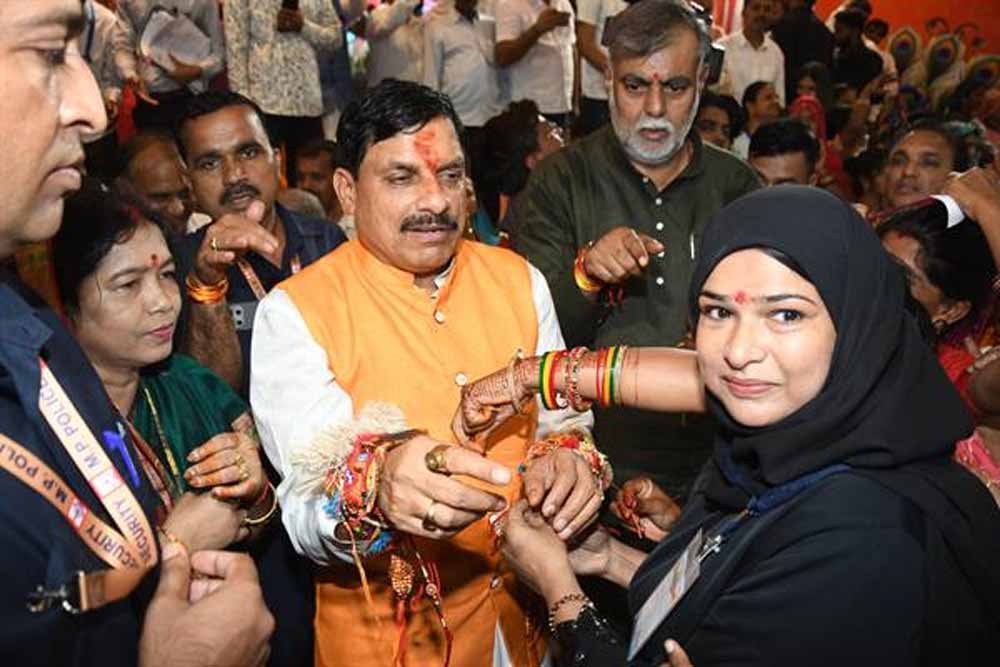 मुख्यमंत्री डॉ. यादव को महिला सरपंचों ने बांधी राखी