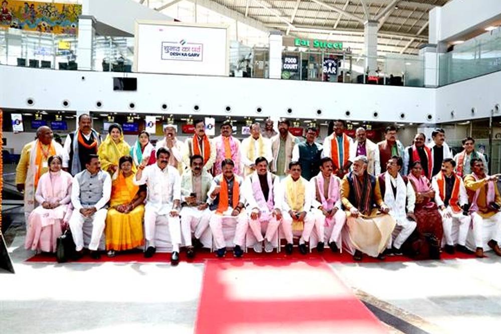 मुख्यमंत्री डॉ. यादव मंत्रि-परिषद के सदस्यों सहित विमान से अयोध्या धाम रवाना