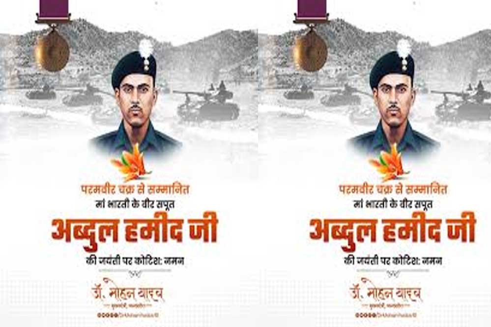 मुख्यमंत्री डॉ. मोहन यादव ने कहा कि मां भारती के वीर सपूत अब्दुल हमीद ने युद्ध में पाकिस्तान के तोप नष्ट कर मातृ भूमि की रक्षा के लिए सर्वस्व न्यौछावर कर दिया था। भारत के सैन्य इतिहास में उनका पराक्रम और शौर्य एक स्वर्णिम अध्याय है, जिससे युवाओं को सदैव प्रेरणा मिलती रहेगी। मुख्यमंत्री डॉ. यादव ने परमवीर चक्र सम्मानित अमर शहीद अब्दुल हमीद की जयंती पर उन्हें नमन किया।