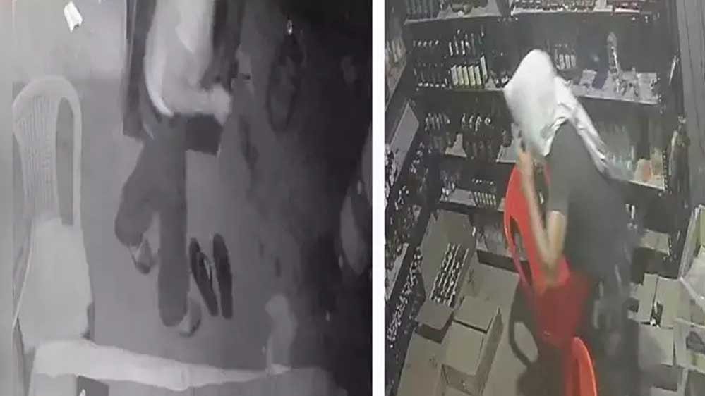 मामला बीती रात इंदौर रोड पर सिरलाय स्थित शासकीय शराब दुकान का है। चोरों ने शराब ठेके के पिछले दरवाजे के पास पतरे में छेद करके अन्दर से दरवाजा खोलकर प्रवेश किया। इस दौरान कूलर की हवा में अन्दर दो सेल्समेन भी सोए थे। वे इतनी गहरी नींद में थे कि चोर ने दुकान के गल्ले, गोदाम से लेकर उनकी पेंट की जेब से भी पैसे निकाल लिए। चोरी की यह पूरी वारदात सीसीटीवी में कैद हो गई है, जिसमें एक चोर दुकान के गल्ले से रूपये निकालता दिखाई दे रहा है।