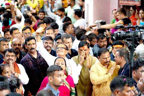 मुख्यमंत्री चौहान सपत्निक भगवान चंद्रमौलेश्वर का पूजन कर सवारी में शामिल हुए