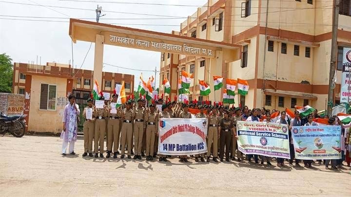 14 एमपी बटालियन एनसीसी विदिशा के कमान अधिकारी के निर्देशानुसार आरवीएस शासकीय कन्या अग्रणी स्नातकोत्तर महाविद्यालय विदिशा के एनसीसी कैडेट्स ने मेरी माटी मेरा देश अभियान के तहत कार्यक्रम आयोजित किया।
