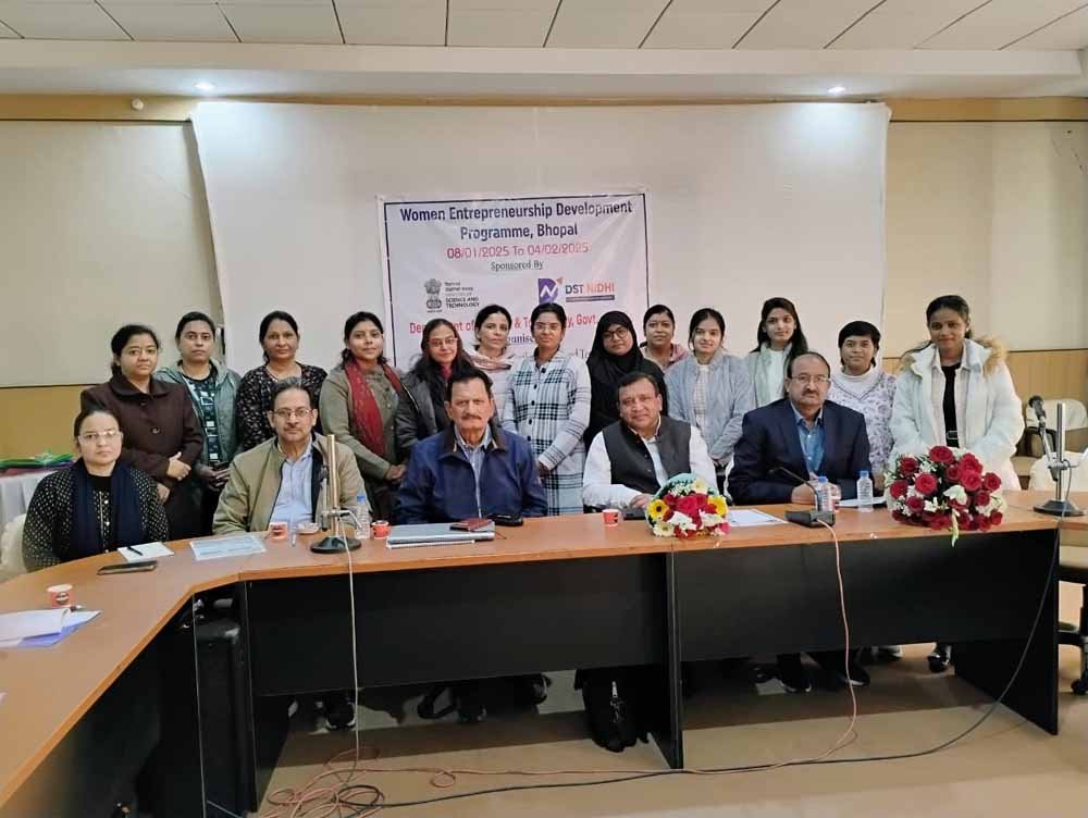 मेपकास्ट भोपाल में अपना उद्योग स्थापित करने वाली इच्छुक महिलाओं के लिए चार सप्ताह का प्रशिक्षण कार्यक्रम बुधवार को प्रारंभ हुआ। इस अवसर पर मेपकास्ट के महानिदेशक डॉ. अनिल कोठारी ने प्रशिक्षणार्थियों से विस्तृत चर्चा करते हुए बताया कि उद्योग के क्षेत्र में सफल होने के लिए मूलभूत आवश्यकता होती है, अपनी रूचि के अनुसार चयनित इकाई को कार्यरूप दिया जाये। उन्होंने कहा कि वर्तमान में महिला उद्यमियों के लिए अपार अवसर है। डॉ. कोठारी ने कहा कि प्रधानमंत्री रोजगार सृजन योजना ओर मुद्रा योजना ऐसी योजनाएं हैं, जिनमें कम पूंजी में उद्योगों की सफल स्थापना की जा सकती है। प्रशिक्षण में शामिल हुई, प्रशिक्षाणार्थियों ने इस कार्यक्रम से अपनी अपेक्षा पर डॉ. कोठारी से चर्चा की। उद्यमिता महिलाओं की जिज्ञासाएं मुख्यतः इकाई का चयन एवं बाजार से संबंधित रही।