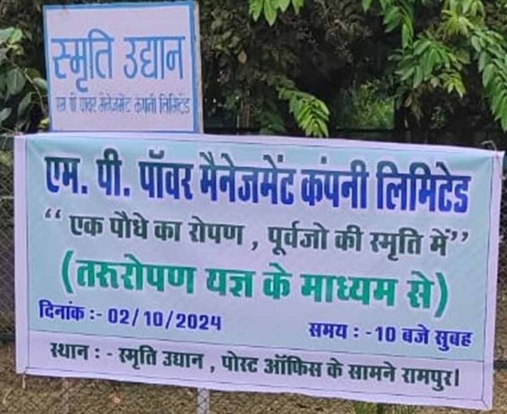 एमपी पावर मैनेजमेंट कंपनी के द्वारा 2 अक्टूबर को गांधी जयंती और श्राद्ध पक्ष के अवसर पर तरूरोपण यज्ञ ‘एक पौधे का रोपण, पूर्वजों की स्मृति में’ कार्यक्रम का आयोजन किया जायेगा। तरूरोपण यज्ञ में जबलपुर स्थित सभी विद्युत कंपनियों के कार्मिक परिजन की स्मृति में एक पौधा लगाएंगे। कार्यक्रम का आयोजन रामपुर स्थित आवासीय परिसर में स्मृति उद्यान में किया जायेगा।