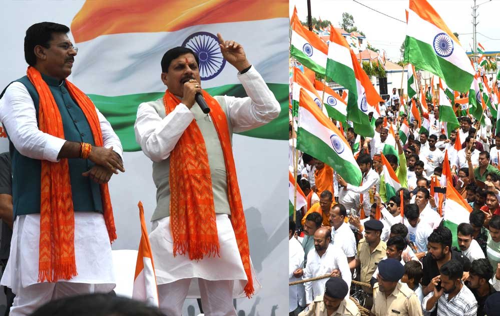 मुख्यमंत्री डॉ. मोहन यादव ने कहा कि तिरंगा हमारी आन-बान-शान का प्रतीक है। प्रधानमंत्री नरेंद्र मोदी ने हर घर तिरंगा अभियान के माध्यम से पूरे देश को देशभक्ति और स्वतंत्रता की भावना में ओतप्रोत होने का अवसर प्रदान किया है। तिरंगे में विद्यमान चक्र देश की गति को दर्शाता है। प्रधानमंत्री मोदी के नेतृत्व में हमने देश को विश्व की पांचवीं अर्थव्यवस्था में शामिल किया है। देश की शक्ति और विशेष कर युवा सामर्थ्य के माध्यम से हम जल्द ही विश्व की तीसरी अर्थव्यवस्था होंगे। स्वतंत्रता दिवस का महत्व हमारे सभी प्रमुख त्योहार होली, दिवाली से अधिक है, अत: हर घर में तिरंगा लहराना चाहिए।