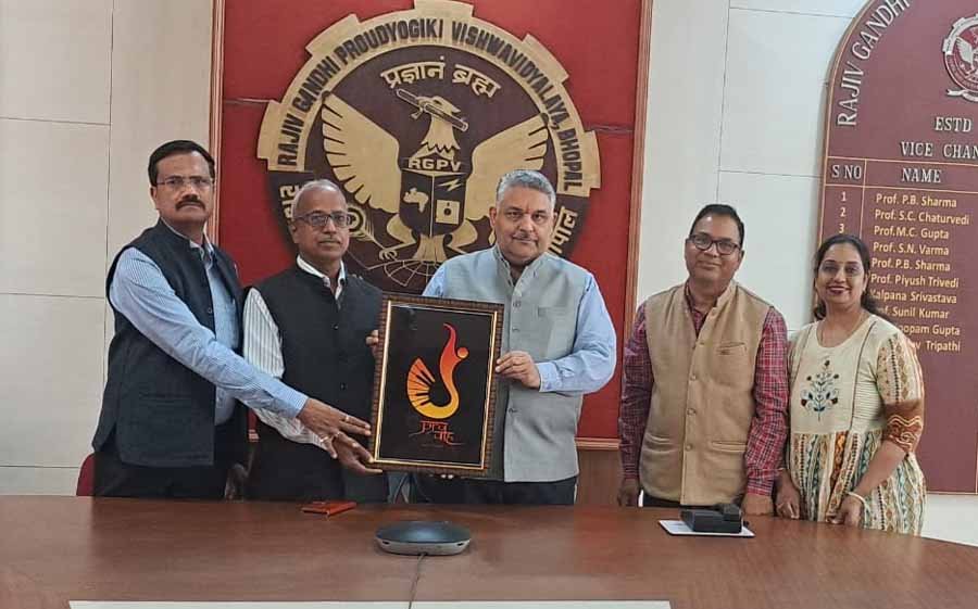 आज विश्वविद्यालय के प्रशासनिक भवन में दो दिवसीय सांस्कृतिक महोत्सव 'प्रवाह" के लोगो का अनावरण राजीव गाँधी प्रौद्योगिकी विश्वविद्यालय के कुलपति प्रो. डॉ. राजीव त्रिपाठी, कुलसचिव डॉ. मोहन सेन, आयोजन के संयोजक डॉ रवींद्र पटेल द्वारा किया गया। इस अवसर पर डॉ. महेश पवार एवं डॉ. शिखा अग्रवाल सहित विश्वविद्यालय के छात्र छात्राएं उपस्थित थे।