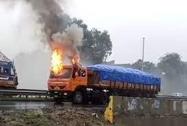 यूपी के चंदौली जिले में सोमवार सुबह सदर कोतवाली व पुलिस लाइन के पास नेशनल हाईवे पर चलते ट्रक में आग लग गई। चालक ने वाहन को सड़क किनारे रोका और फिर कूदकर भाग गया। सूचना पर इंस्पेक्टर राजीव कुमार सिंह सिपाहियों के साथ मौके पर पहुंचे। दमकलकर्मियों ने आग पर काबू पाया। संयोग अच्छा रहा कि रहा अग्निकांड में जान-मान की क्षति नहीं हुई।कोयला से भरा तिरपाल बंधा ट्रक वाराणसी से बिहार की तरफ जा रहा था। पुलिस लाइन व सदर कोतवाली कोतवाली से चंद कदम नेशनल हाईवे पर ट्रक के केबिन से अचानक से धुंआ निकलने लगा। ड्राइवर केबिन में आग लगने की स्थिति को भांप गाड़ी को किनारे लगाया और कूद गया। तब तक आग फैल चुकी थी। सूचना पर पुलिस के साथ ही आननफानन दमकलकर्मी मौके पर पहुंचे।