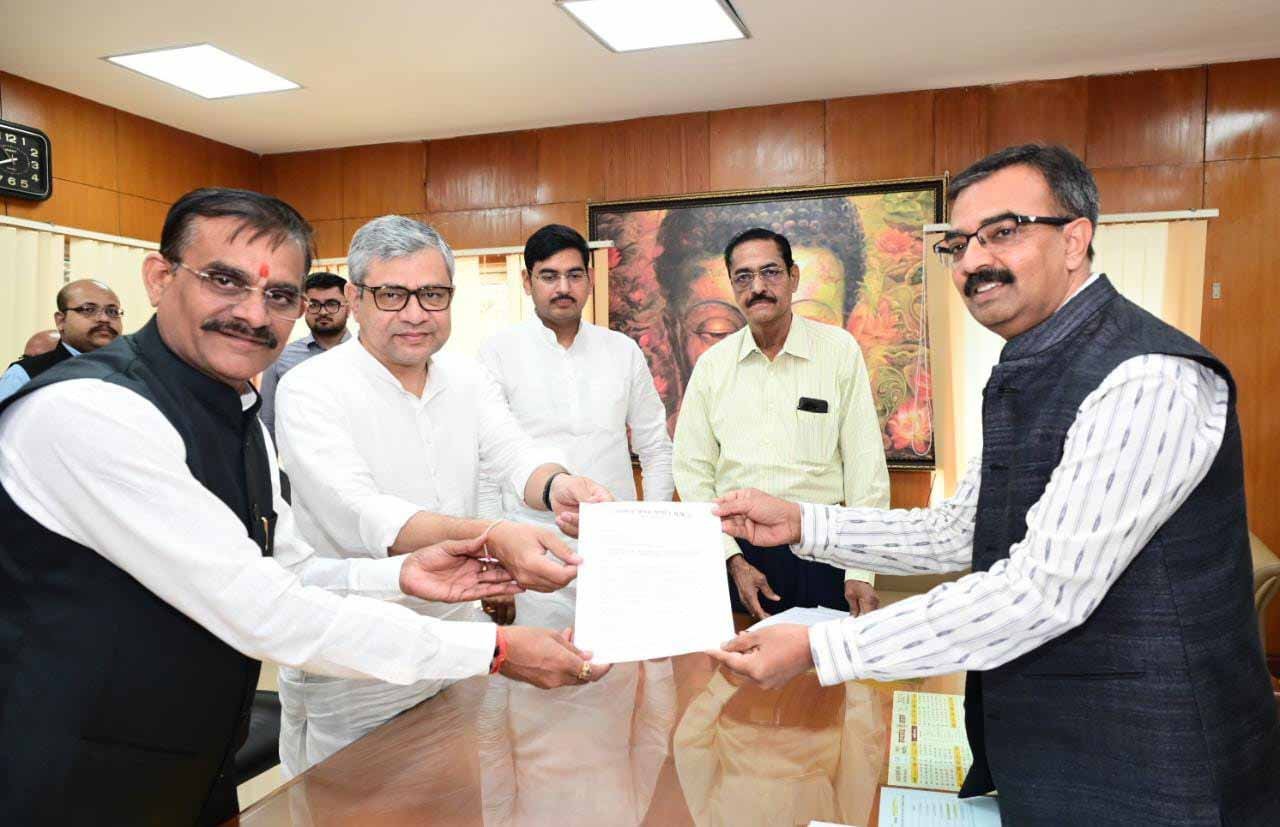 प्रदेश भाजपा के अध्यक्ष वीडी शर्मा और रेल मंत्री अश्विनी वैष्णव ने आज मुख्य निर्वाचन पदाधिकारी अनुपम राजन से मुलाकात की। इस दौरान दोनों नेताओं ने उन्हें एक ज्ञापन भी दिया। इसमें उन्होंने मांग करते हुए कहा कि 80 साल से ज्यादा उम्र और दिव्यांग वोटर्स का मत प्रतिशत बढ़ सके, इसे लेकर और प्रयास किए जाने चाहिए।
