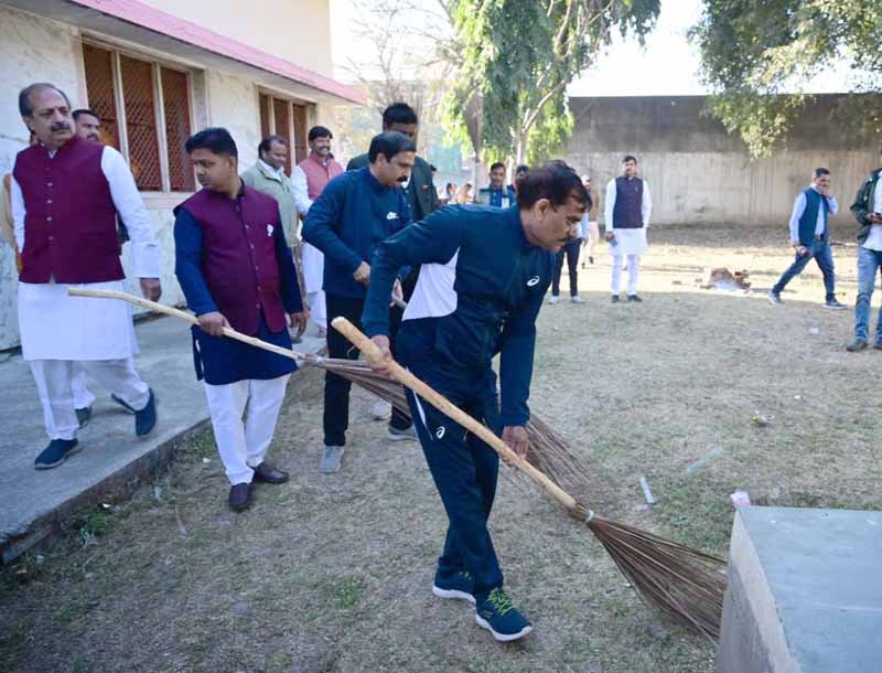 शुक्रवार की सुबह शर्मा ने आवन गांव में स्थित आचार्य वाचस्पति शुक्ल संस्कृत वेद विद्यालय में योग किया। योग करने के बाद वे गांव के हनुमान मंदिर पहुंचे। यहां पर उन्होंने हाथ में झाडू थामी और यहां की साफ-सफाई में जुट गए। मंदिर की सफाई करने के बाद वे बाजार में निकले और अपने कार्यकर्ताओं के साथ मिलकर चाय की दुकान पर पहुंचे। यहां पर उन्होेंने ग्रामीण से चाय पर चर्चा की। इस दौरान गांव वालों ने ही उन्हें दोनों ही सरकारों की कई योजनाएं गिना दी, जिसका वे लाभ ले रहे हैं। शर्मा ने भी ग्रामीणों को योजनाओं की जानकारी दी। वीडी शर्मा के साथ प्रदेश मीडिया प्रभारी आशीष अग्रवाल, जिला अध्यक्ष धमेंद्र सिंह सिकरवार सहित भाजपा के अन्य नेता भी यहां पर मौजूद थे।
