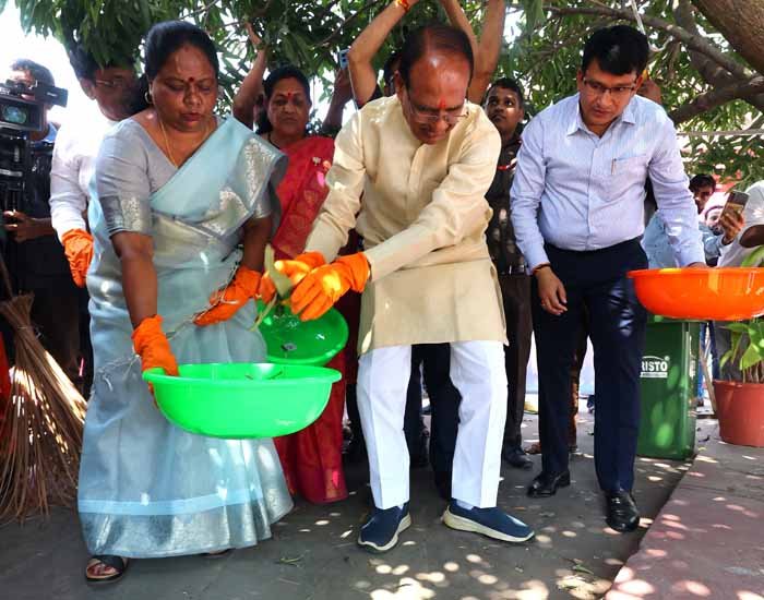 मुख्यमंत्री चौहान ने "स्वच्छता ही सेवा अभियान" में किया श्रमदान