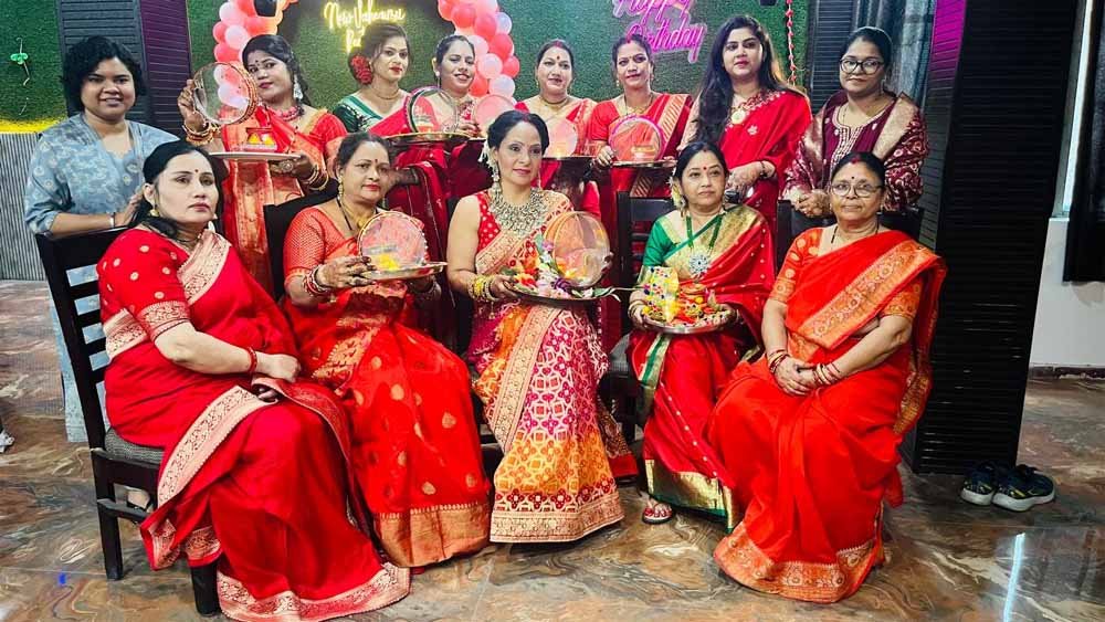 निगम परिवार की महिला क्लब ने करवाचौथ पर्व को बड़े धूमधाम से मनाया । सभी महिलाएं अपने घरों से पारंपरिक परिधान और श्रृंगार कर दीपक ले करवा चौथ पर्व को मनाने के लिए एकत्रित हुई l