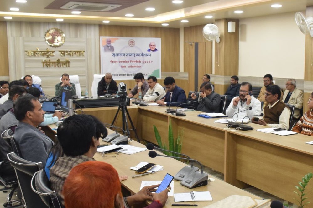 विदित हो कि देश के प्रधानमंत्री नरेन्द्र मोदी के मंशानुसार देश को 2047 तक विकशित राष्ट्र की परिकल्पना को साकार करने के लिए जिला स्तर पर कार्यशाला का सुशासन दिवस के अवसर पर आयोजन किया गया। कार्यशाला में उपस्थित अधिकारियों को संबोधित करते हुयें कलेक्टर चन्द्रशेखर शुक्ला ने कहा कि हमारा सिंगरौली जिला मध्यप्रदेश के सुदूर उत्तर-पूर्व में स्थित जनजाति बाहुल्य जिला है, जिसकी आबादी का 33 प्रतिशत जनजाति आबादी  है । विशेष रूप से पिछड़ी जातियां जिन में बैगा,अगरिया इस जिले में प्रमुखता से अपनी उपस्थिति रखती हैं। विगत अर्द्ध शताब्दी से खनन परियोजनाएं कोल एवं थर्मल पावर की परियोजनाओं के जुगलबंदी में इस जिले के औद्योगिक परिदृश्य में व्यापक विस्तार किया है ।